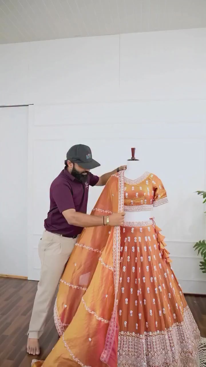 Majestic Mustard Orange Sequence and beads work Lehenga Set