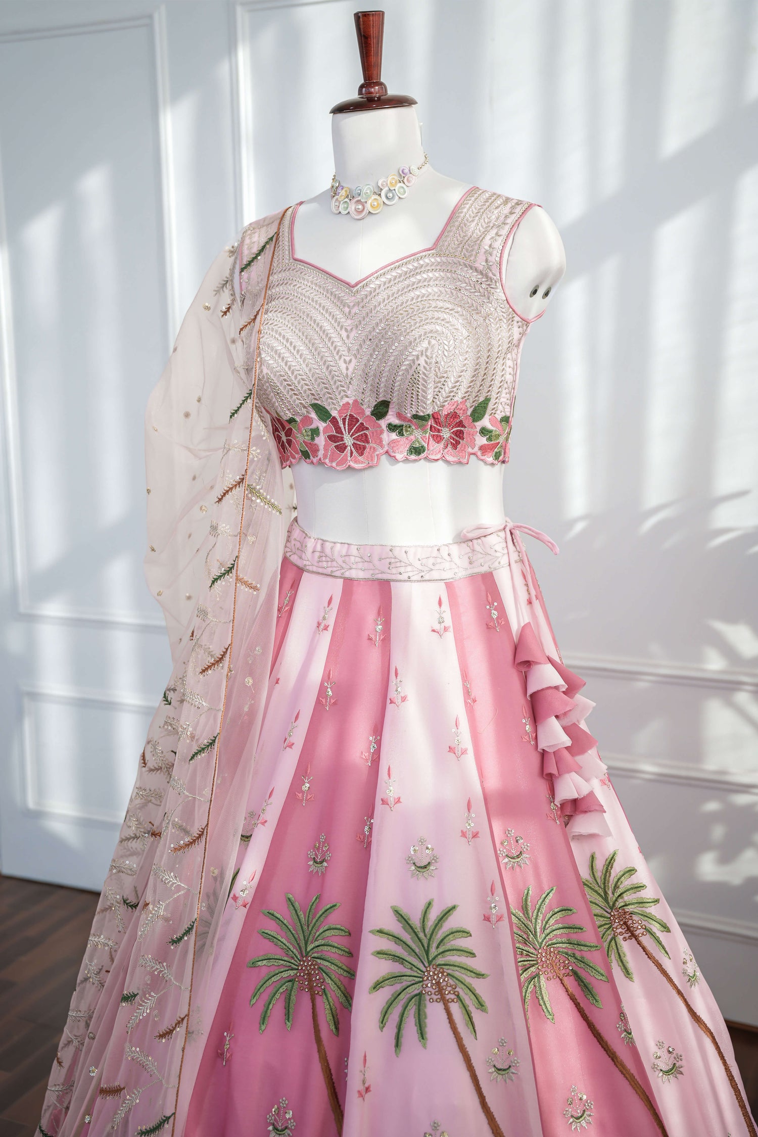 Blush Pink Net Lehenga with All-Over Elegant Embroidery