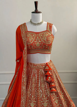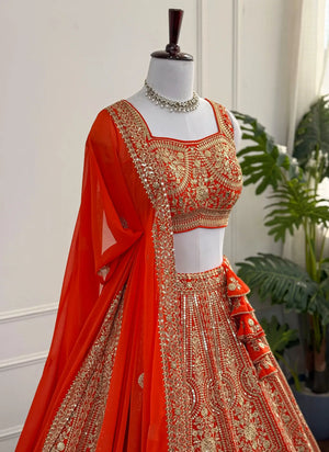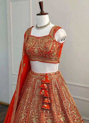 Home All Exquisite Orange Bridal Lehenga Choli Set