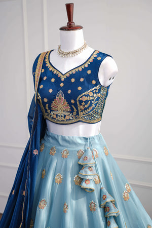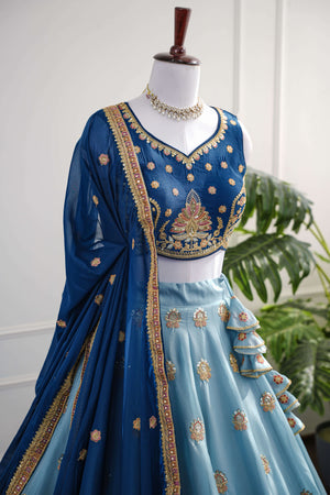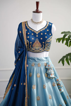 Regal Navy & Sky-Blue Embroidered Lehenga Set