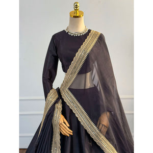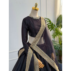 Tropical Elegance Black Silk Lehenga Set with Dori & Zari Work
