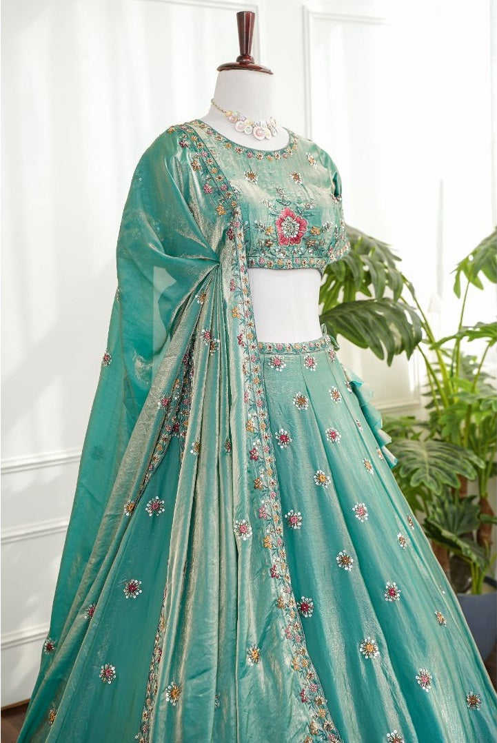 Aqua Blue Lehenga with Multicolor Floral Embroidery Aqua Blue Lehenga with Multicolor Floral Embroidery