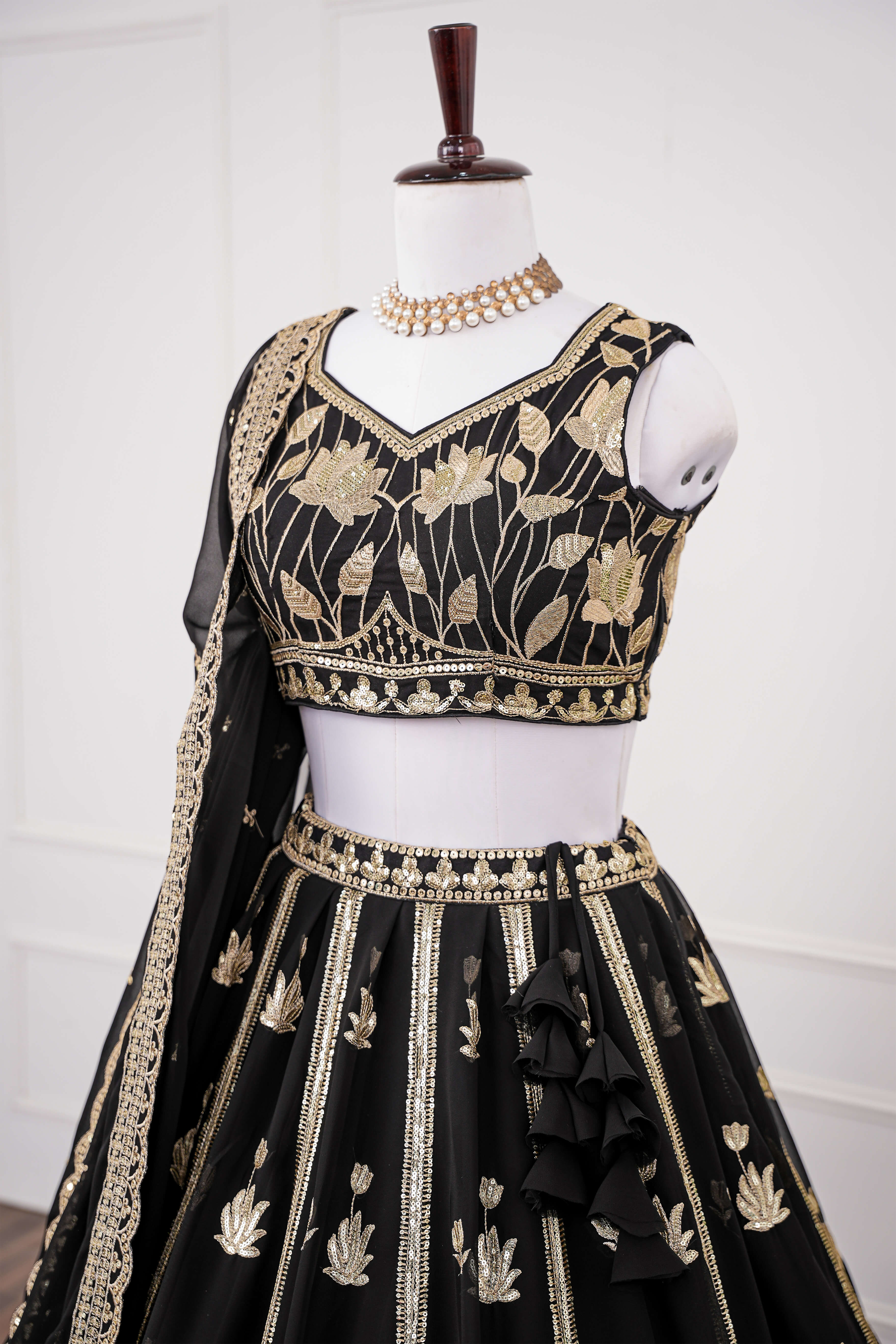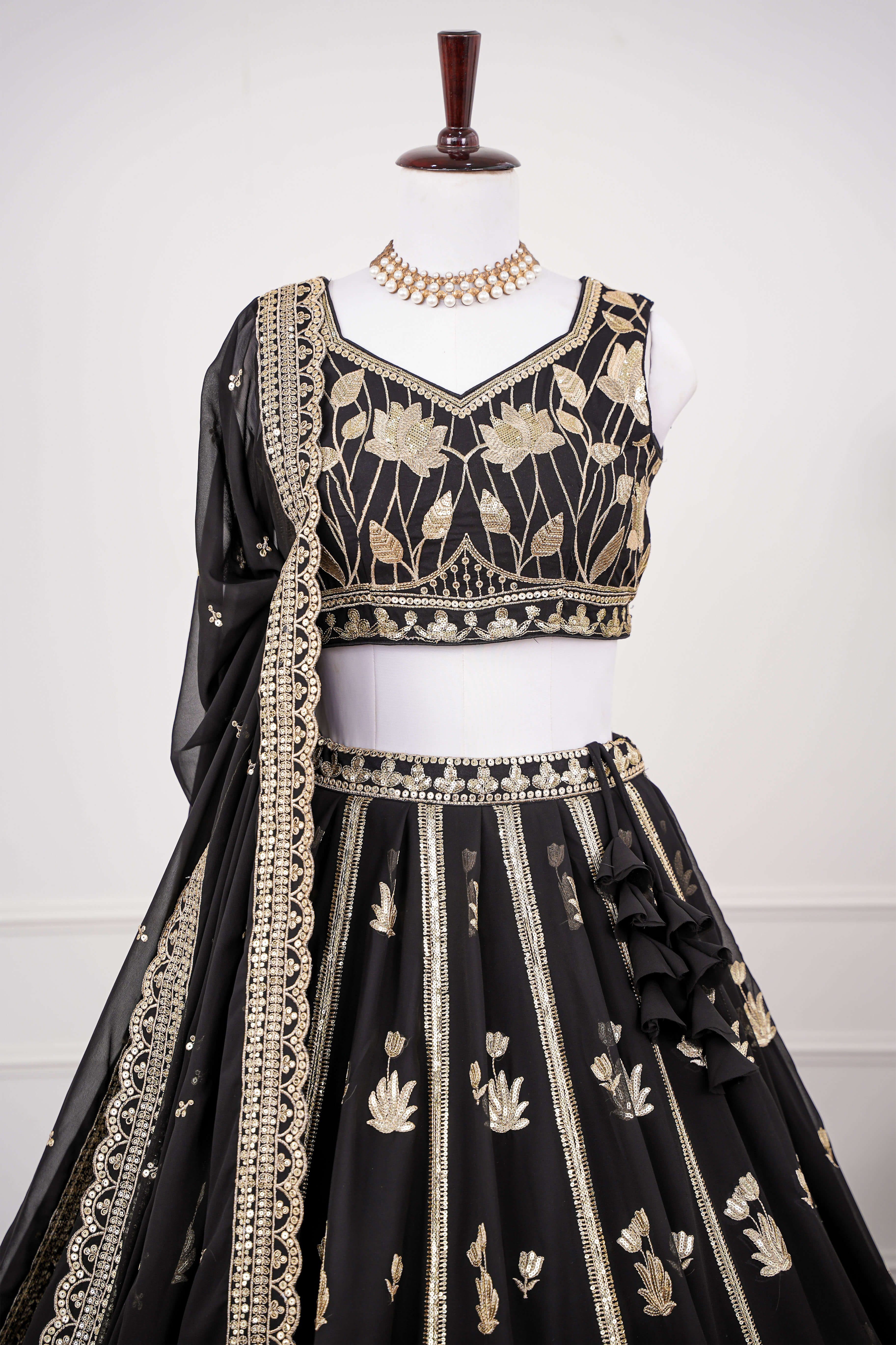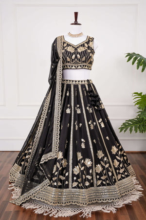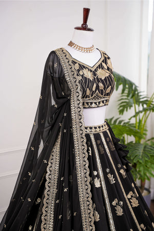 Black and Gold Floral Embroidered Lehenga Set