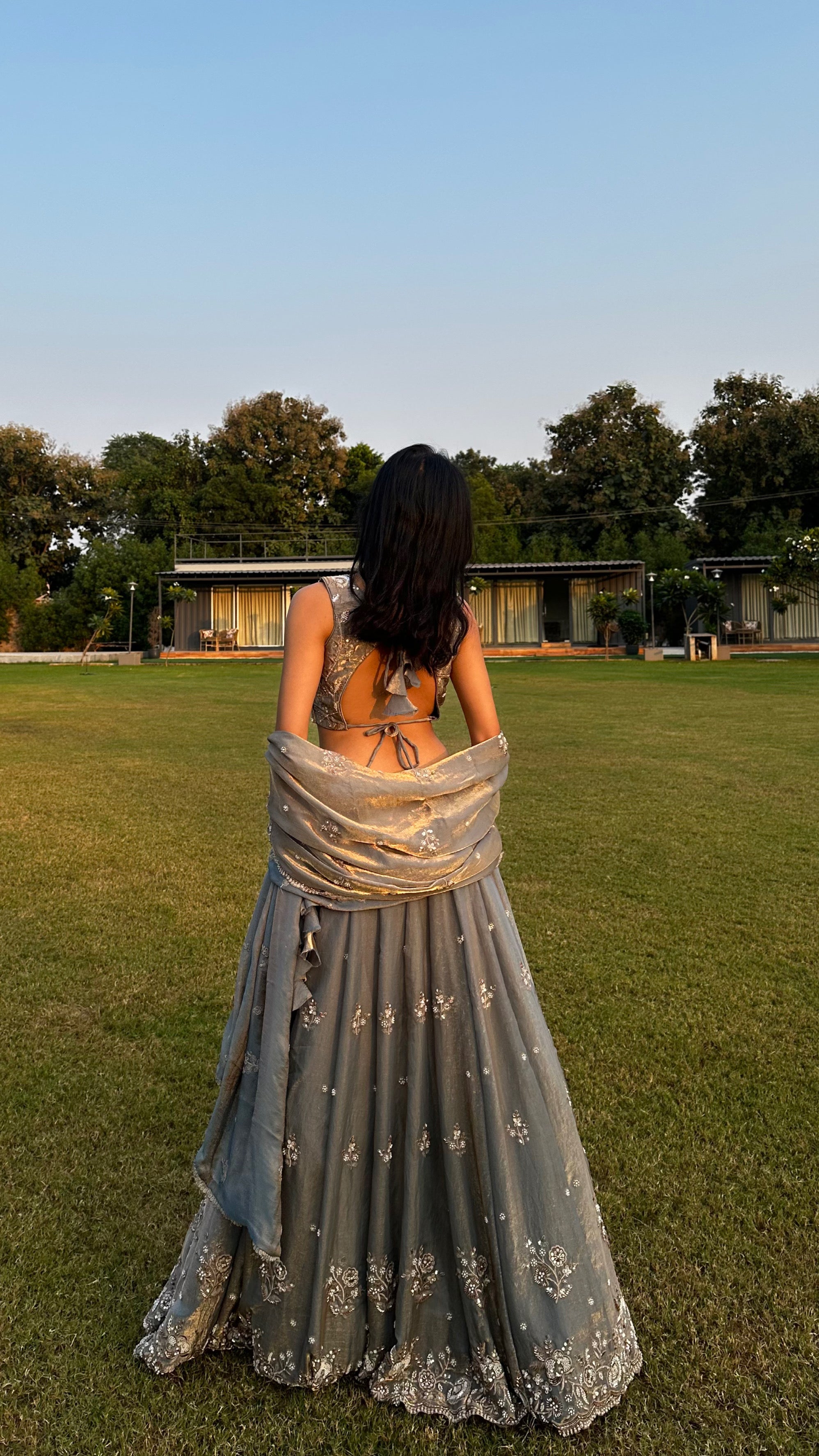 Smoky Grey Embroidered Lehenga Set