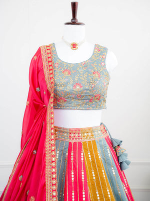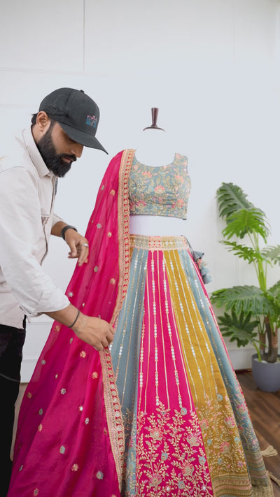 Vibrant Multicolor Panelled Embroidered Lehenga