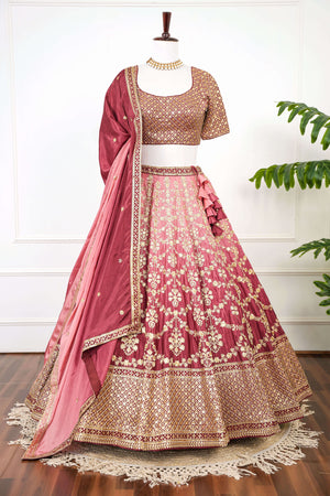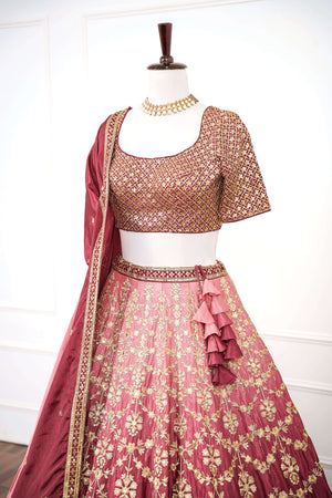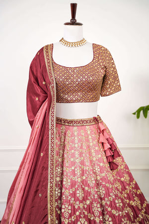 Maroon Pink Zari Embroidered Bridal Lehenga Set