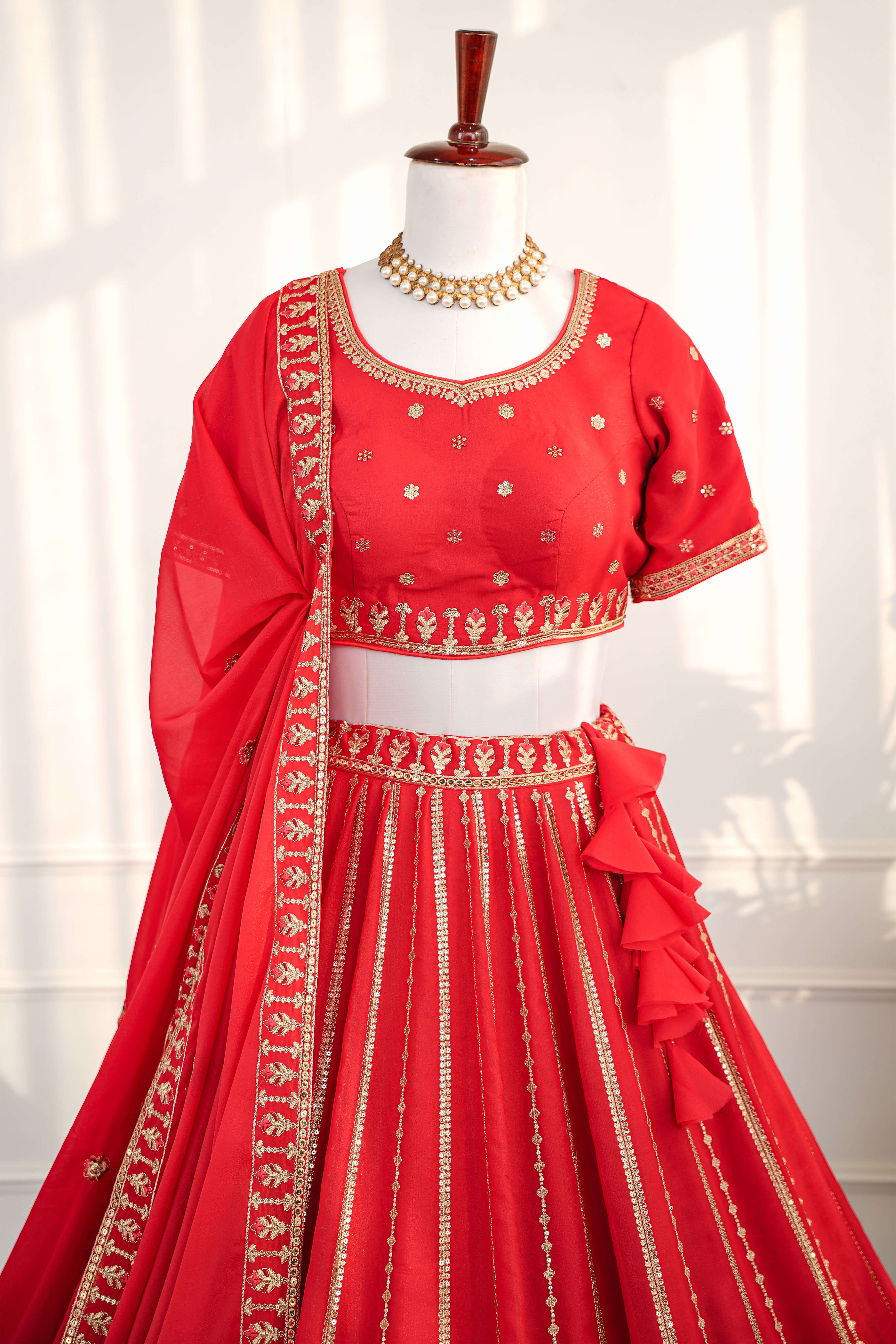 Scarlet Red Embroidered Bridal Lehenga Set
