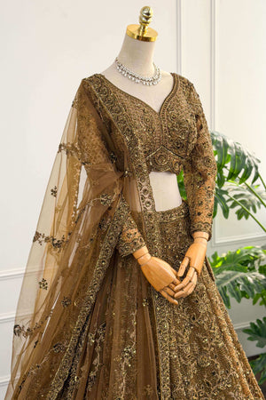 Antique Gold Net Lehenga Set with Embroidery and Dori Work