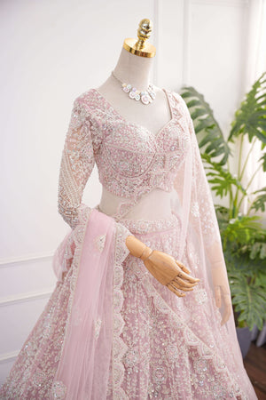 Blush Pink Net Lehenga with All-Over Elegant Embroidery
