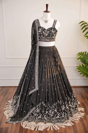 Elegant Black Lehenga with Intricate Zari & Beads Embroidery