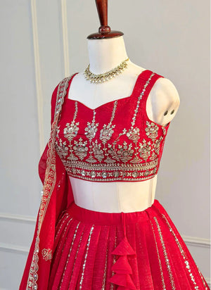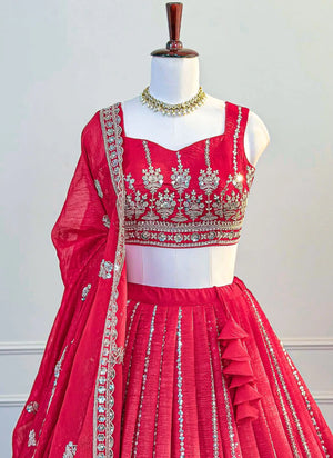 Rani Pink Silk Lehenga with Zari & Beads Embroidery