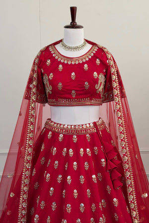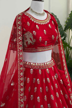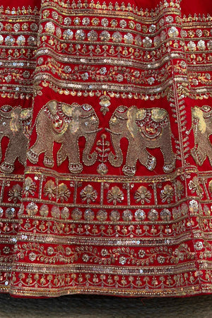 Royal Red Silk Lehenga with Zari & Beads Embroidery
