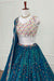 Teal Blue Embroidered Lehenga with Ivory Blouse