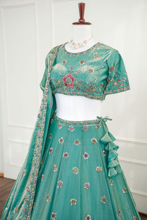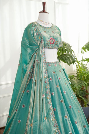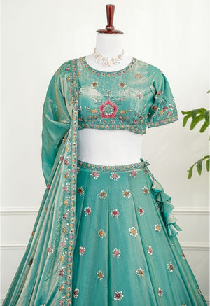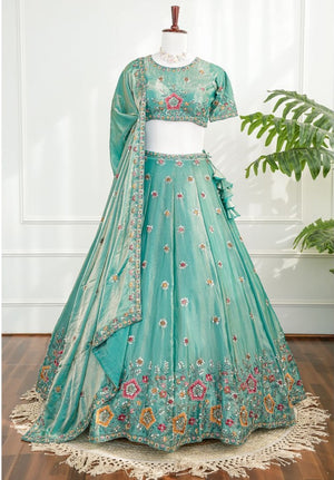 Aqua Blue Lehenga with Multicolor Floral Embroidery