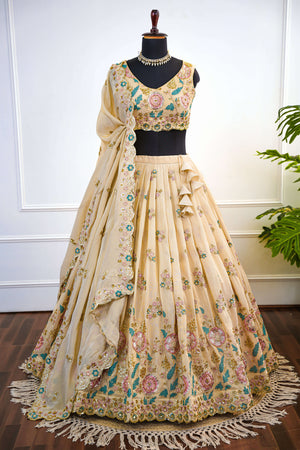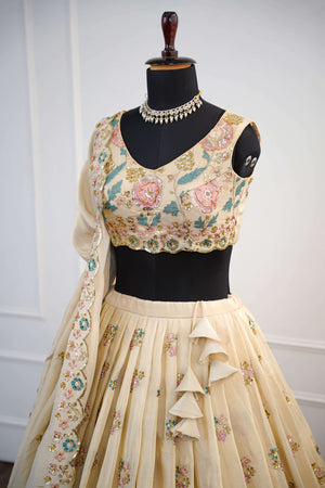 Elegant Beige Floral Embroidered Lehenga Set